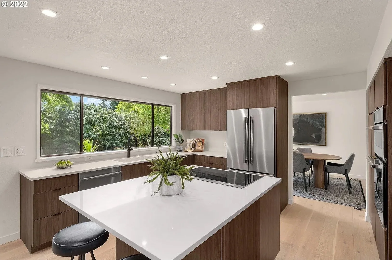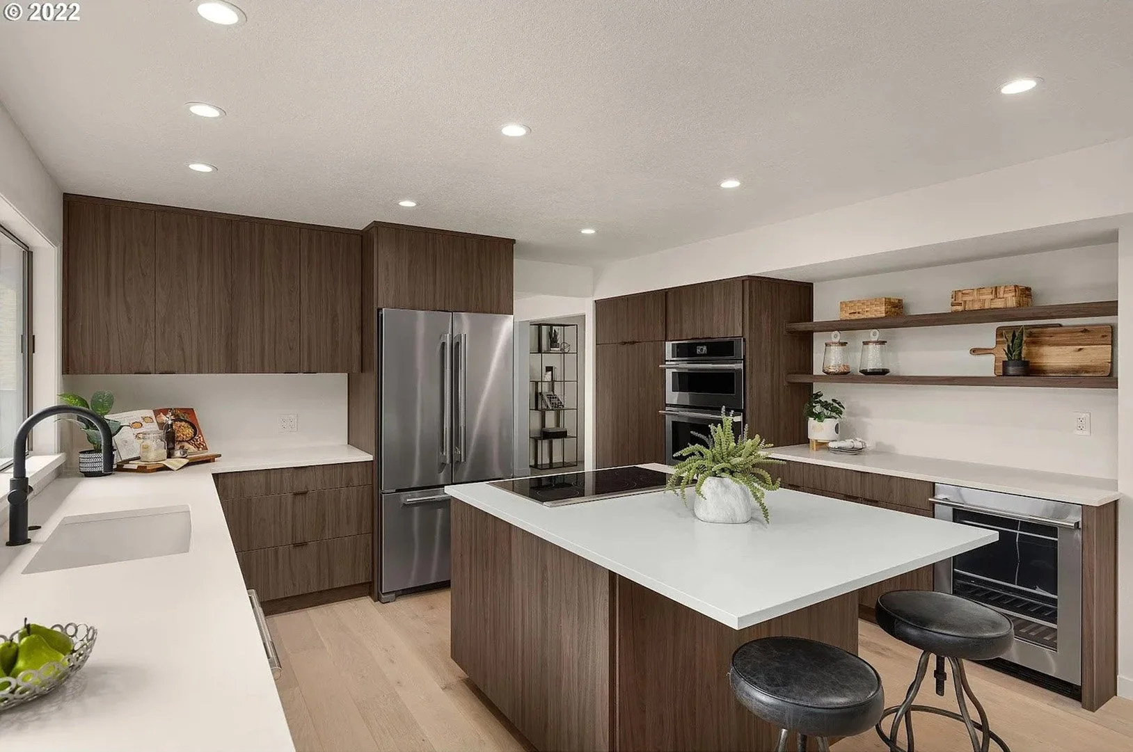 A renewed interior of this home transformed it into a beautiful retreat and entertaining space, complete with an expansive kitchen and living area. Dual fireplaces in the family room and primary suite elevate the space with modern comfort. The redesigned bathrooms maximize the space for family and guests while providing top-notch luxury in the primary suite.